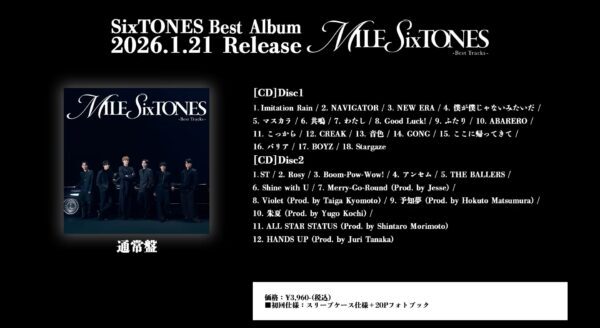 楽曲制作に携わった「SixTONESプロデュース曲」6曲が収録されます。